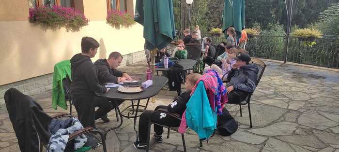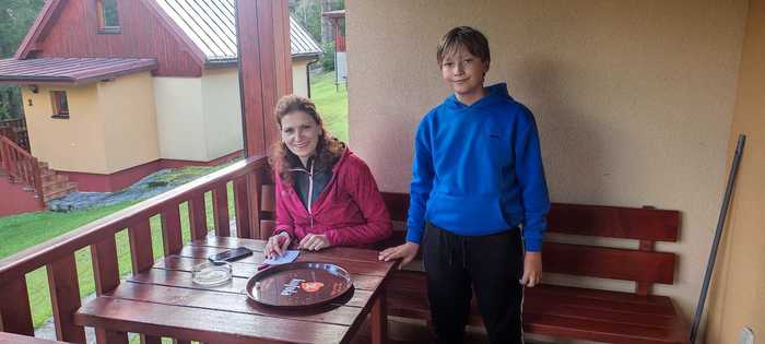 V úterý v noci se znovu spustil vydatný déšť. Ráno už sice nepršelo, ale hřiště zůstalo podmáčené, a tak jsme museli venkovní sportovní aktivity odložit. Děti to ale neodradilo – využily dopoledne k příjemné procházce po Lomné a cestou se zastavily v místní samoobsluze, kde si dokoupily chybějící drobnosti.