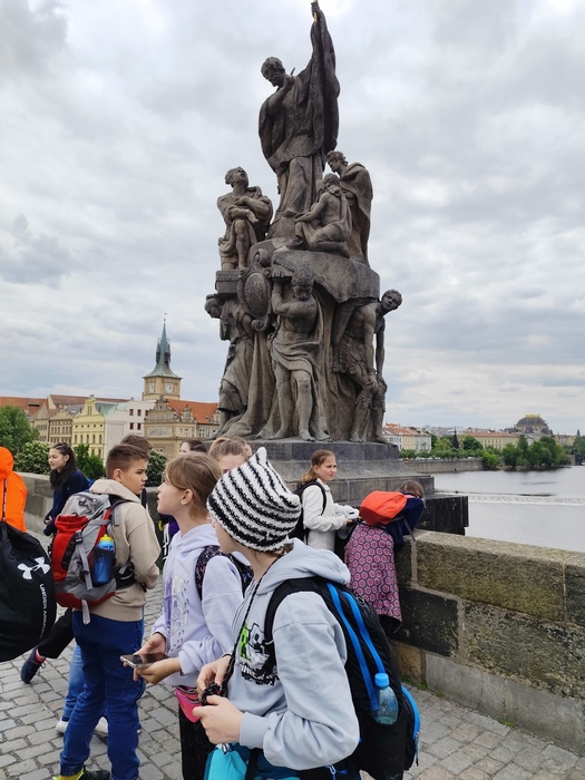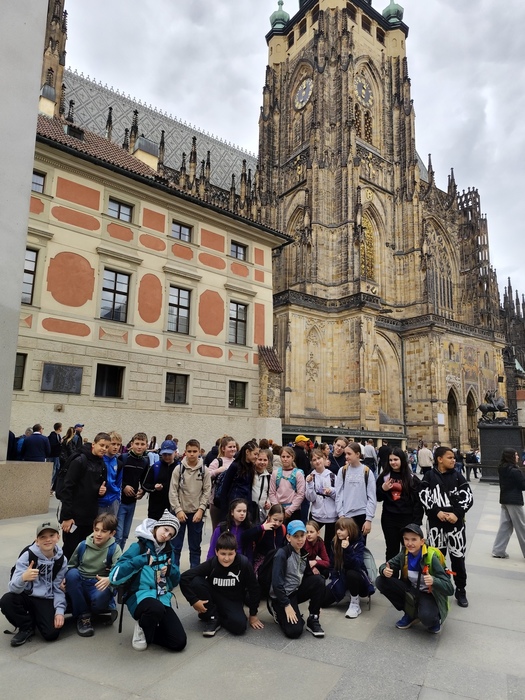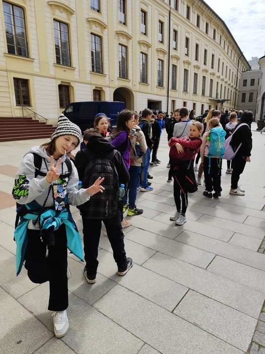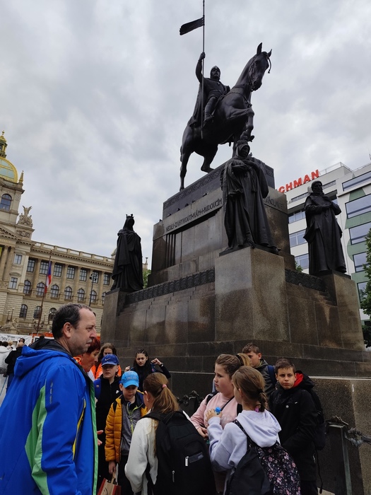 Ve středu 7. 5. si skupina žáků třídy 5.A naší školy musela přivstat. Společně se vydali na brzkou ranní cestu vlakem do našeho hlavního města Prahy, kde bylo v plánu putování po stopách české státnosti. Po příjezdu se metrem přesunuli na Vyšehrad, kde se seznámili s historií tohoto místa. Jejich pozornosti neunikla rotunda sv. Martina, bazilika sv. Petra a Pavla, vyšehradský hřbitov Slavín. Z hradeb sledovali panorámata Prahy. Další kroky zavedly žáky do areálu Pražského hradu. Prohlídku zahájili u renesančního Letohrádku královny Anny, prošli nádherně rozkvetlou Královskou zahradou k budově míčovny. Následně se vydali prozkoumat katedrálu sv. Víta. Ve starobylém královském paláci obdivovali architekturu historického Vladislavského sálu a nezapomněli navštívit i baziliku sv. Jiří, kde jsou uloženy ostatky českých knížat z rodu Přemyslovců. Zážitkem bylo střídání hradní stráže u Matyášovy brány. Poté žáci zamířili Nerudovou ulicí k chrámu sv. Mikuláše, odkud jejich cesta pokračovala za památkami tzv. pražských Benátek. Na Kampě se zastavili u známé Lennovovy zdi, na mostě zamilovaných u Čertovky a také u Werichovy vily. Pak je již čekal 500 metrů dlouhý Karlův most s 16 mostními oblouky a bohatou výzdobou soch. U sochy sv. Jana Nepomuckého si žáci vyprosili dle pověsti kousek svého štěstí. Krátkou zastávku si udělali i v Klementinu, kde se již od roku 1775 pravidelně sledují meteorologická data. Úžasný zážitek na všechny čekal u věže Staroměstské radnice, kdy se v celou dal do pohybu světoznámý orloj se svými apoštoly a jejich atributy – klíčem, sekerou, kalichem, křížem, knihou, valchou, pilou a dalšími. Pražský orloj ukazuje čtyři druhy časů – hvězdný, staročeský, středoevropský a jako jediný na světě čas babylonský. Poslední zastávkou poznávací exkurze se stalo Václavské náměstí, odkud již kroky všech účastníků směřovaly zpět na hlavní nádraží. Během dne žáci doplňovali energii ze zásob, které jim na cestu připravili rodiče, ale našel se i čas na drobné nákupy přímo v Praze. Při pobytu přálo také počasí, a tak si den všichni užili a budou mít řadu zážitků i vzpomínek.