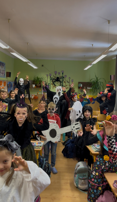 Na pátek 31. října se většina žáků naší školy těšila. Ptáte se proč? Protože členové žákovského parlamentu vyhlásili již tradiční soutěž "O nejstrašidelněji vyzdobenou třídu" a zároveň o co nejvíce žáků v kostýmu. Žáci si se svými třídními učiteli připomněli svátek všech svatých, který letos připadne na neděli 2. listopadu, a strašidelný svátek Halloween, který se slaví v anglosaských zemích. Většina tříd nenechala nic na poslední chvíli a začala se připravovat už několik týdnů dopředu. Učebny se postupně měnily. Přibývalo kostlivců, netopýrů, balónků s různými příšerkami, papírových i vydlabaných dýní, duchů, zombie, v některých třídách i rakví … A žáci? Ti měli celé podzimní prázdniny na vymýšlení originálního kostýmu.