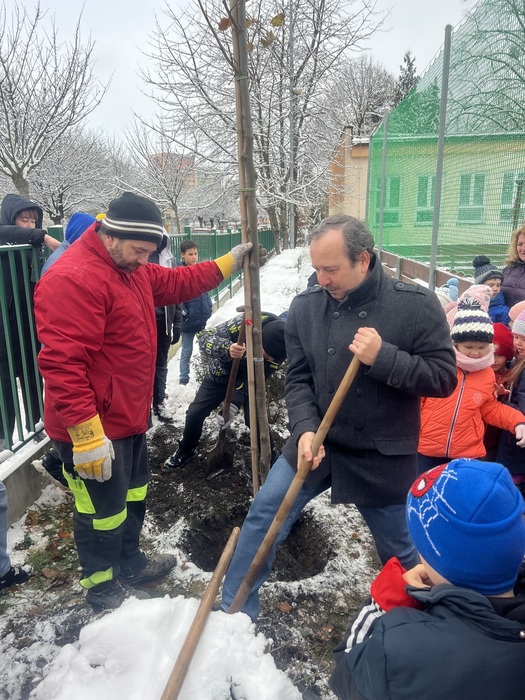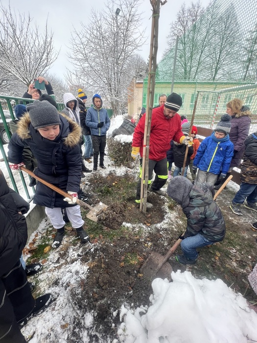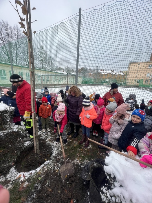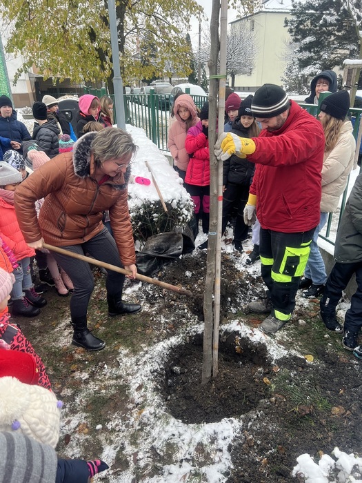 V tomto školním roce si naše "sluníčková" škola připomíná významné výročí - 100 let od svého založení. Vzhledem k tomu se připravuje řada aktivit, které budou tyto "školní narozeniny" připomínat. Včera se za přítomnosti žáků prvních a šestých tříd uskutečnila první z nich. Stávající zeleň na školní zahradě doplnil nový český národní strom - lípa srdčitá, který bude připomínkou kulatého výročí školy. Přítomní žáci, učitelé i vedení školy se aktivně zapojili do jeho výsadby. V závěru setkání žáci prvních tříd novému zahradnímu přírůstku společně zazpívali.