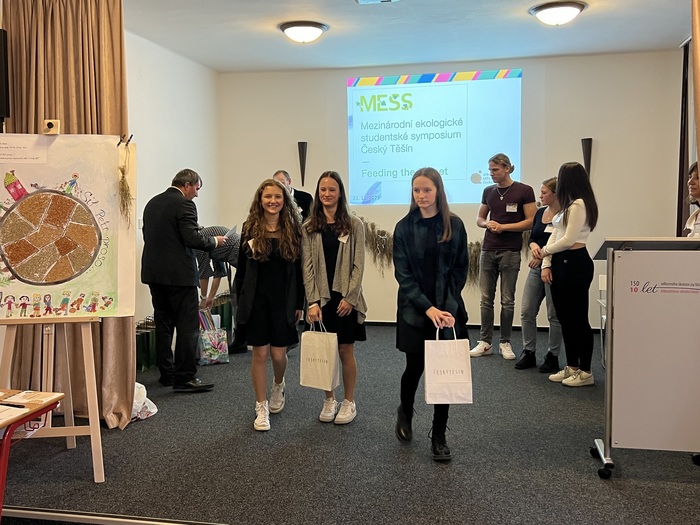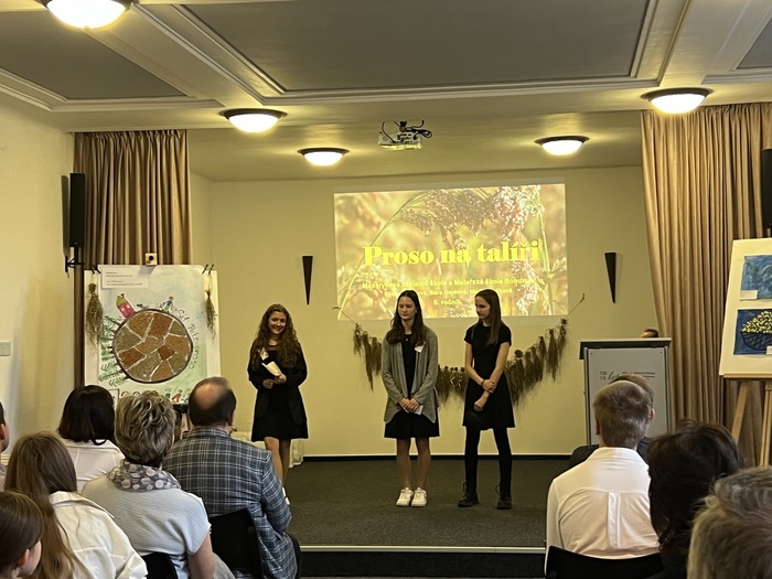 Dne 23. 11. 2023 se v prostorách Konferenčního sálu Albrechtovy střední školy v České Těšíně, Tyršova 611/2, 737 01 Český Těšín uskutečnil 8. ročník mezinárodního ekologického studentského sympozia. Nad tímto setkáním převzal záštitu hejtman Moravskoslezského kraje, Zemědělský svaz ČR, Město Český Těšín a garantem se stal i Klub ekologické výchovy Praha. Všechny příspěvky prezentujících žáků a studentů byly spojeny s prosem, které patří k nejstarším kulturním plodinám, a dodnes se významně uplatňuje v lidské výživě, u nás pak zejména v rámci bezlepkové diety. A proč proso? Důvodem je vyhlášení roku 2023 Mezinárodním rokem prosa. V rámci konference bylo prezentováno celkem 14 zajímavých příspěvků. Žákyně Bára Gajdová, Eliška Krestová a Marie Stošková představily svůj příspěvek s názvem PROSO NA TALÍŘI, který přinesl zajímavý pohled na uplatnění prosa v naší kuchyni. Děvčata se svojí paní učitelkou připravila i malou ochutnávku pro přítomné účastníky.